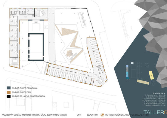 La rehabilitación llevada a cabo en la ampliación de la facultad de Bellas Artes comienza con varios objetivos que queremos llevar a cabo después de un previo análisis en el que hemos observado diferentes problemas tanto funcionales como constructivos. Encontramos una pieza bastante importante en el recinto como es la antigua casa de Gonzalo de Bilbao, la cual, actualmente, se encuentra encerrada por otras construcciones posteriores a ésta.